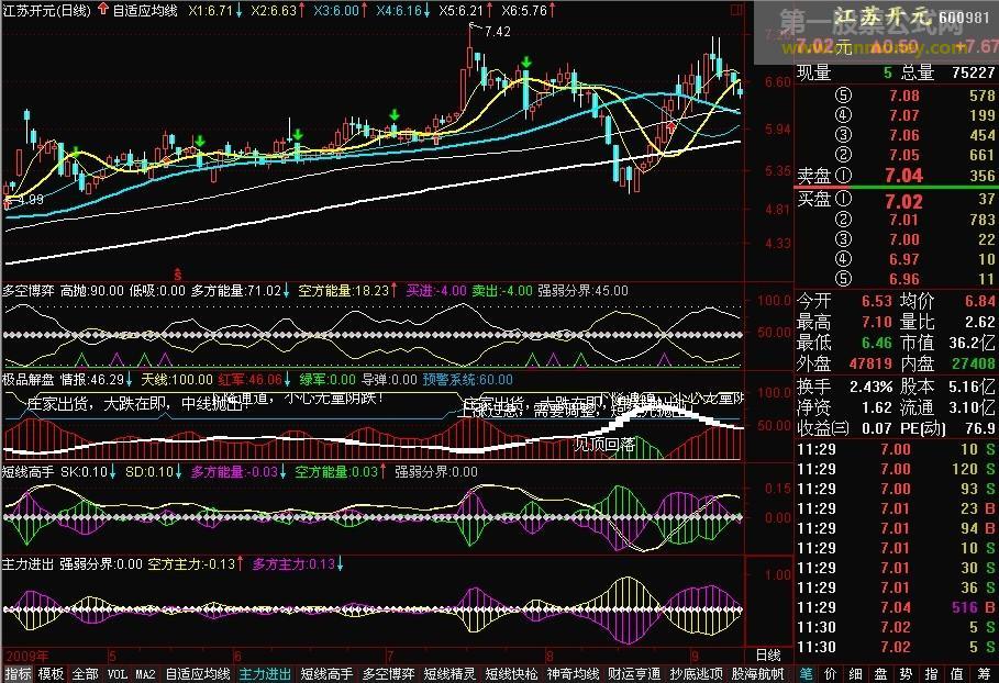 自适应均线系统包含短线(黄色),中线(兰色),长线(白色)三套均线